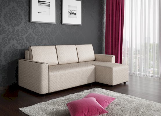 Компактный, необыкновенно уютный, практичный угловой диван «Некст» как будто специально создан для семейного отдыха. В этом диване нет ничего лишнего, каждый его элемент функционален. В сложенном виде на диване «Некст» без труда разместятся несколько человек.В разложенном с помощью механизма «Еврокнижка» виде данная модель имеет достаточные габариты для комфортного сна и отдыха. Она может быть постоянным спальным местом кого-то из домочадцев. Декоративные кант отличного от основной обивки цвета по контуру изделия и декоративные съемные подушки являются частью отделки дивана.