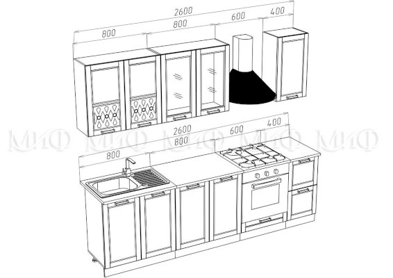 Высота верхних шкафов: 736 мм