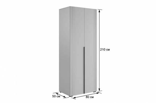 Шкаф оснащён длинными пластиковыми ручками и имеет удобное внутреннее наполнение: две большие полки и одна длинная штанга. Это позволяет рационально использовать пространство и разместить различные типы одежды.