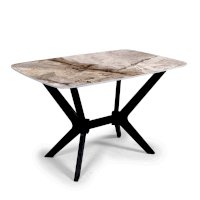 Столешница данного стола изготовлена из МДФ 16 мм, с применением фотопечати, рисунок которой защищен нанесением слоя специального лака. Одной из особенностей этого обеденного стола являются его ноги в форме крестовины. Это придает столу не только эстетическую привлекательность и индивидуальность, но и функциональность, так как данная форма ног гарантирует стабильность и прочность изделия.