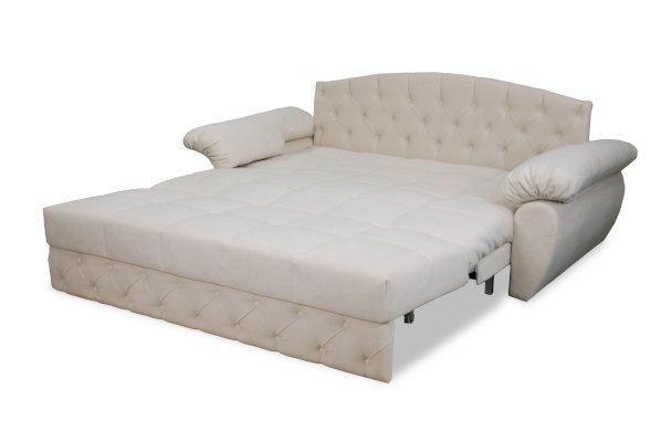 Прочность и долговечность обеспечивает металлический каркас дивана в сочетании с наполнителем из пенополиуретана и синтепона. Наличие съемных подушек на подлокотниках добавляет удобство при эксплуатации. Изголовье выполнено методом "каретная стяжка". Подголовники обеспечивают дополнительный комфорт сидя на диване.