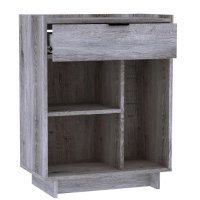 Тумба с ящиком ФЛЕКС 27 в светлом цвете Дуб Шавиниган выполнена из ЛДСП класса эмиссии Е1 толщиной 16 мм. Напольная тумба с выдвижным ящиком на шариковых направляющих и открытыми нишами разного размера. Бортики по краям столешницы предотвратят падение предметов. Предусмотрена универсальная сборка тумбы.