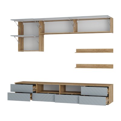 Гостиная «Камелия» - это комплексное решение для уютной гостиной. Разнообразие вместительных зон для хранения позволяет обустроить комфортную зону отдыха. Лаконичный дизайн и нежные оттенки фасадов «шарли пинк» и «шарли бриз» создают атмосферу расслабленности и гармонии. Фрезеровка на фасадах в виде геометрических узоров добавляет динамику в пространство и оживляет его.