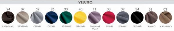Обивка: Ткань (Велюр Боска), Ткань (Велюр Velutto), Ткань (Велюр Nova), Ткань (Велюр Grand), Кожзам