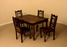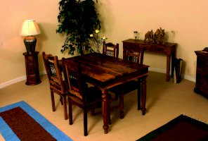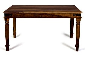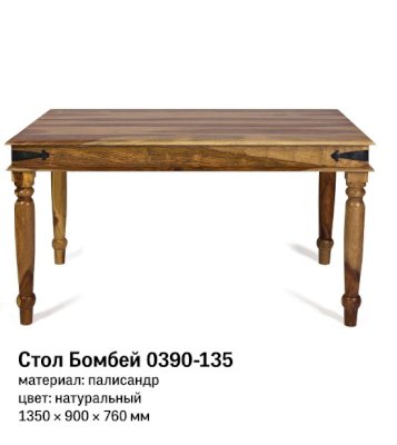 Изысканный обеденный стол из коллекции BOMBAY, выполненный из массива палисандра, способен стать не просто частью комнаты, но и задать тон вашему интерьеру. Элегантные резные ножки ручной работы и винтажная фурнитура из черного металла привносят в дизайн живости и служат ярким акцентом изделия. Размеры стола позволяют с удобством разместить от четырех до шести человек. Деревянная столешница из массива палисандра, обработанная прозрачным лаком, зачаровывает благородством рисунка, изысканностью материала и красотой. Модель долговечна, прочна, надежна и не требует специального ухода. Стол отлично гармонирует с мебелью из коллекции BOMBAY, поставляется в разобранном виде.