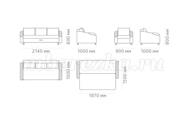 Размер дивана : 2140*1000*800 мм