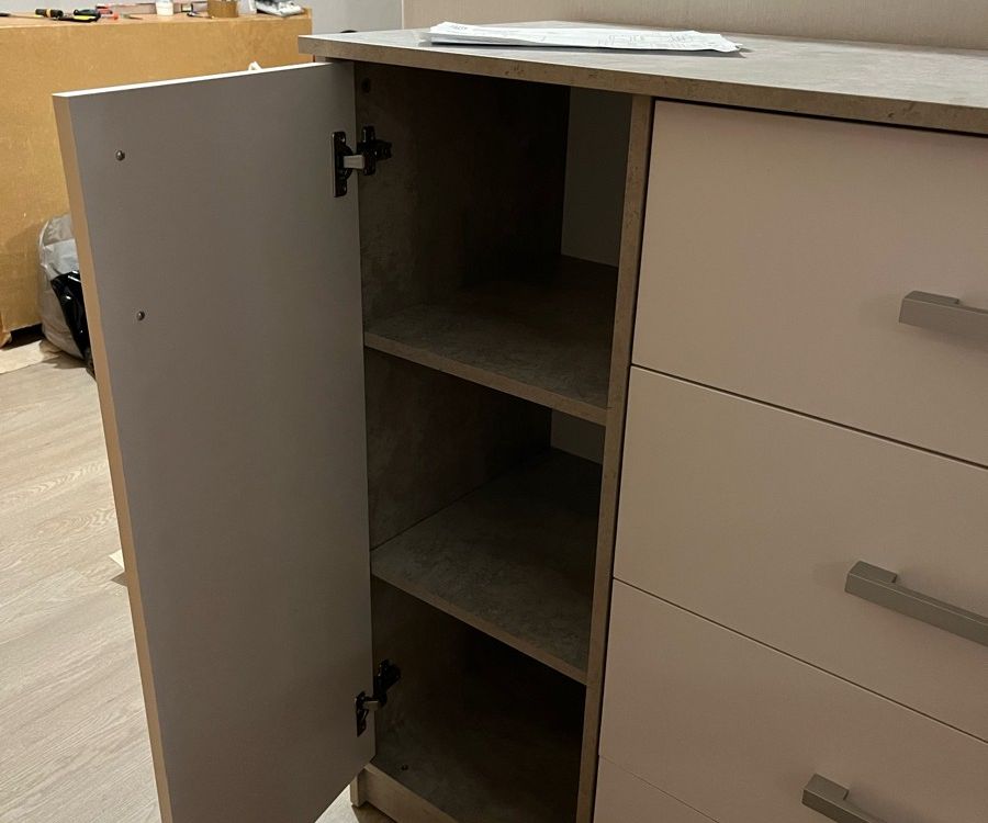 Отличный комод, влюбилась, как только увидела на фото! Фасад очень хорошего качества , брака не было, полная инструкция на сборку в удобном формате, комплектующие все есть! Ящики и двери фиксируются плавно, при полном закрытии. На сборку ушло всего 2 часа, нам помог шуруповёрт, а доставка в Воронеж была неделю) Ставлю этому комоду 100/10, цена вообще вау, взяли по скидке !)