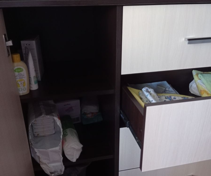 Выбирали комод по фото. Даже не ожидали, что комод окажется настолько качественным и красивым! Все детали без дефектов и сколов, что очень порадовало! Достаточно крепкая фурнитура, крепкие салазки. Приятно, что продавец очень внимательный и положил даже наклейки для того, чтобы закрыть место крепления! Однозначно рекомендую к покупке! Теперь хотим угловой шкаф и тумбу из этой же серии мебели, чтобы собрать комплект.