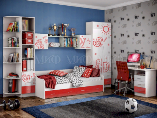 Мебель для детской "Алфавит" - это самый короткий путь для создания комфортного и удобного пребывания вашего ребенка в своей комнате для занятий, учебы и отдыха. Креатив интерьеру добавят оригинальные фасады.